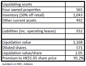 [11/13/15 note: I fat-fingered the inventory number above. The more precise number is 1,074 so the liquidation value is slightly higher than the above table shows.]