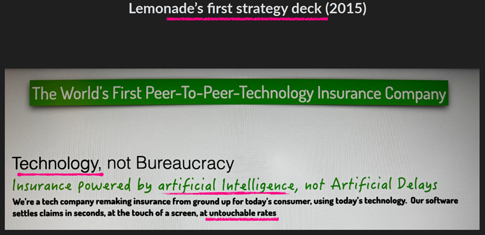 Lemonade’s S-1, filed in June 2020, mentioned AI 37 times, including in the second sentence of their business overview. Lemonade has been discussing AI regularly since they were founded—long before AI was cool and before they were going public.